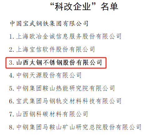 山西太鋼不銹鋼股份有限公司入選最新“科改企業(yè)”名單