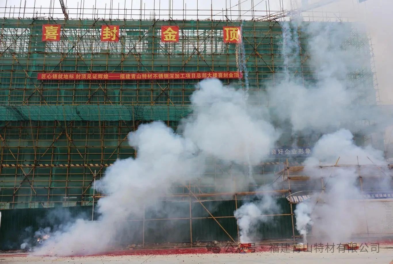 福建青山特材不銹鋼深加工項(xiàng)目總部大樓喜封金頂